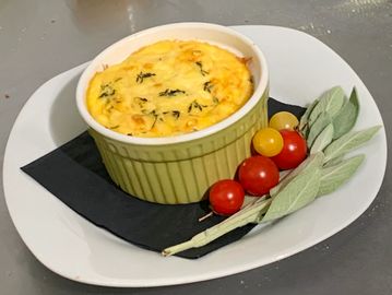 Indulge in savory delight with our Mushroom Clafoutis! Clafoutis is a delicious cheesy custard with a crackled top and luscious, mushroom studded interior. Our version is a savory twist on this classic, made with sautéed wild mushrooms, leeks, Gruyere and Edam cheeses and fresh herbs.